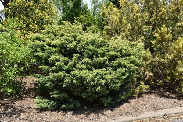 Dream Joy Juniper will grow to be about 24 inches tall at maturity, with a spread of 4 feet. It tends to fill out right to the ground and therefore doesn’t necessarily require facer plants in front. It grows at a slow rate, and under ideal conditions can be expected to live for approximately 30 years.