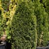 A truly dwarf narrow, upright Arborvitae, with dense, emerald green lacy foliage, held in attractive vertical sprays; remains bright green year round; hardy and adaptable, takes pruning well, protect from winter sun; a great accent or formal hedge