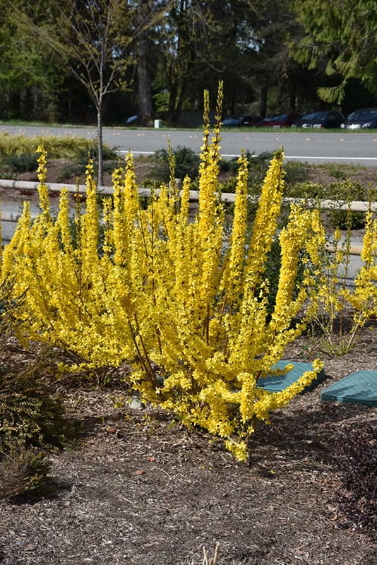 Show Off® Starlet Forsythia will grow to be about 3 feet tall at maturity, with a spread of 4 feet. It tends to fill out right to the ground and therefore doesn’t necessarily require facer plants in front. It grows at a medium rate, and under ideal conditions can be expected to live for approximately 30 years.